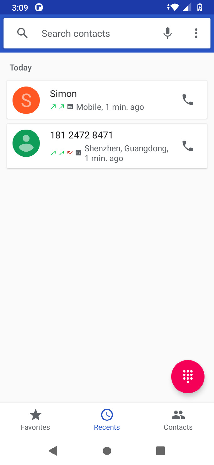 Calls of the same phone number are grouped